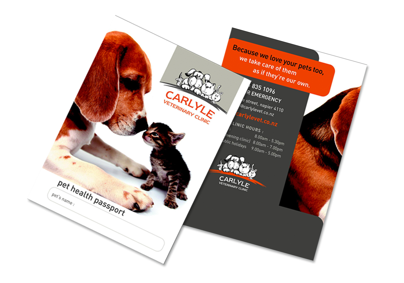 We worked with Carlyle Veterinary Clinic to completely re-imagine their brand touch-points across marketing mediums. We re-designed their brand positioning, brand story, visual brand identity, signage, and brand collateral. It was a full end to end transformation for an iconic Hawke's Bay brand.